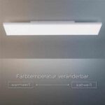 Die Deckenleuchte Frameless überzeugt durch ihr schmales und unauffälliges Design. Ihre rahmenlose Form, nach der sie benannt ist, besteht aus Kunststoff und ist in verschiedenen Farben erhältlich. An der Decke ist sie einfach zu montieren und nimmt wenig Raum ein und ist der perfekte Problemlöser für dunkle Räume, die keine auffällige Leuchte benötigen. Ihre Leuchtleistung liegt bei 2500 Lumen und eignet sich hervorragend für ein Arbeitszimmer oder den Homeofficebereich. Auch für das Schlafzimmer, das Badezimmer oder Ankleidezimmer überzeugt das Panel durch seine Farbverstellbarkeit und das unauffällige Design. Die Lichtfarbe kann zwischen warm weiß, neutralweiß und Tageslicht umgestellt werden, sodass Sie sich das Licht für jeden Gebrauch individuell umstellen können. Eine stufenlose Dimmung ist hierbei über die Fernbedienung möglich mit einer zusätzlichen Memoryfunktion (speichert die letzte Einstellung). Ein zusätzlicher Wanddimmer muss nicht verbaut werden, da die Leuchte ganz normal über die Wandschalter ein- und ausgeschaltet werden kann.
