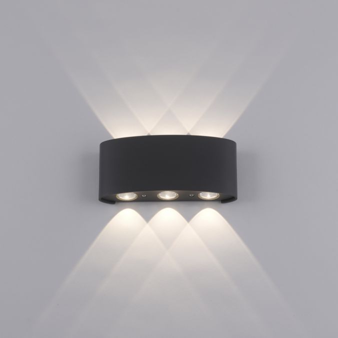 Die Leuchte wird inklusive sechs LED-Leuchtmitteln geliefert, deren warmweißes Licht ein besonders einladendes Ambiente schafft. Der Lichtaustritt erfolgt nach oben und unten, wodurch nicht nur viel Helligkeit, sondern auch ein dekorativer Lichteffekt erzeugt wird – ideal zur Akzentbeleuchtung von Hauswänden, Eingangsbereichen oder Terrassen.