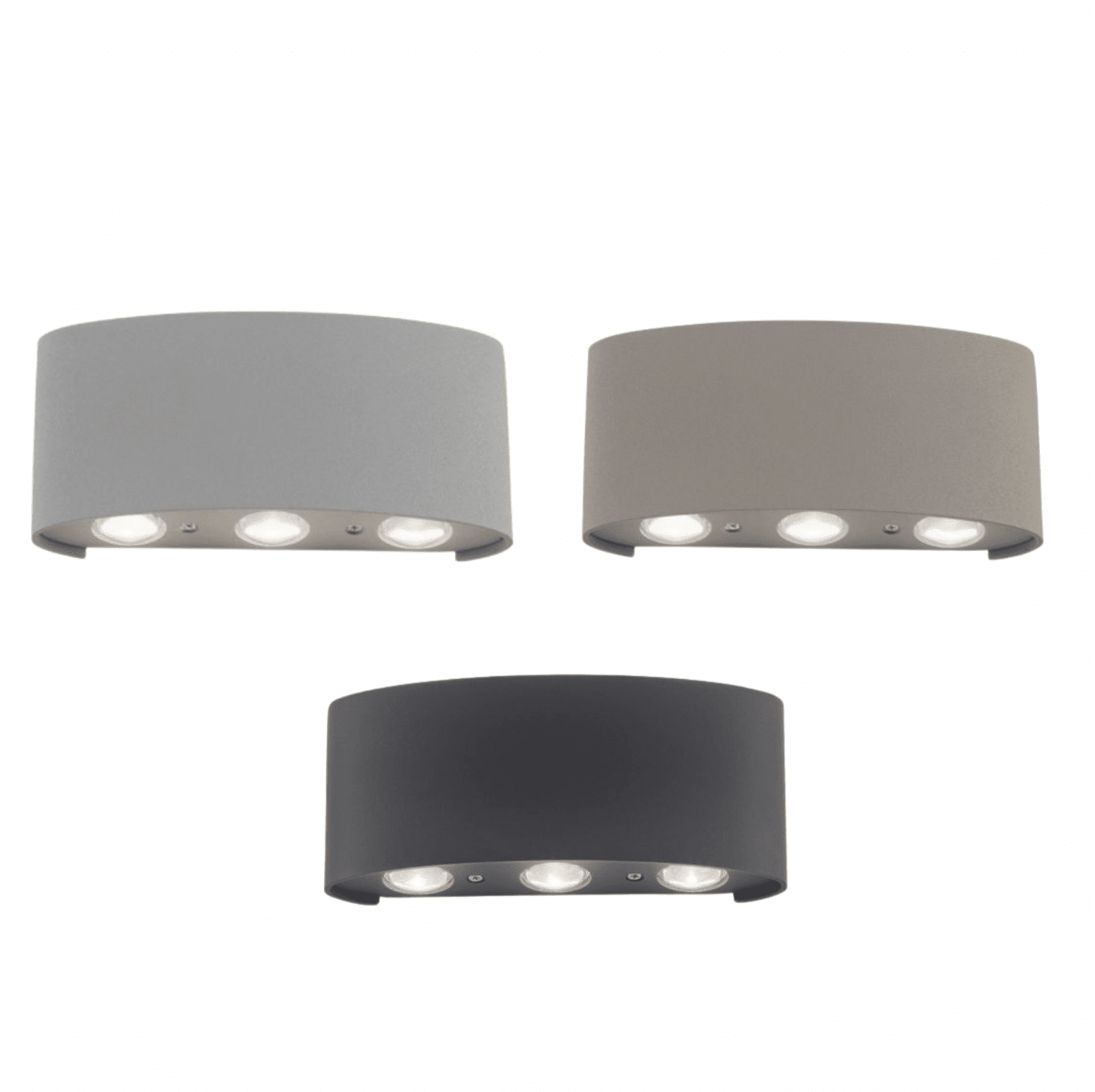 Moderne LED-Wandleuchte im halbrunden Design – stilvolle Außenbeleuchtung in Sand, Schwarz oder Grau.