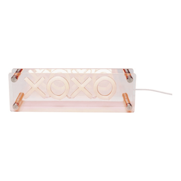 Setzen Sie ein leuchtendes Statement mit der LED-Tischleuchte XOXO. Das moderne Schriftzug-Design bringt eine verspielte, liebevolle Atmosphäre in jeden Raum und ist ein echter Hingucker auf Sideboard, Regal oder Nachttisch.