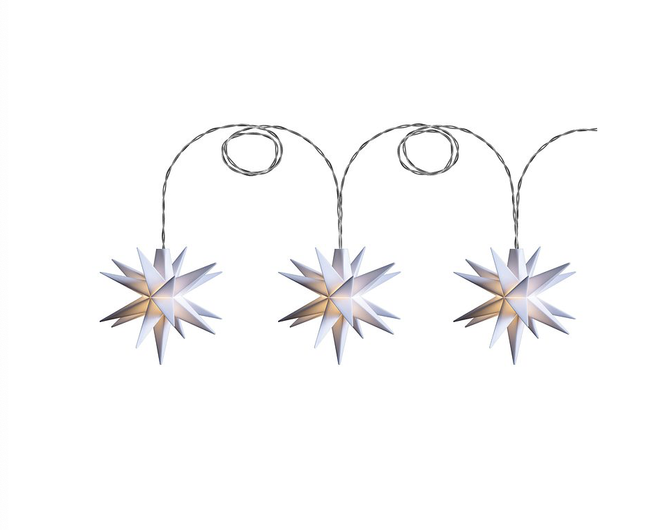 Verwandle dein Zuhause in eine funkelnde Wohlfühloase. Jeder der drei Sterne besteht aus robustem Kunststoff, hat 18 Zacken und leuchtet sanft in einem eleganten Weiß – perfekt für die Adventszeit oder als stilvolle Ganzjahresdekoration.