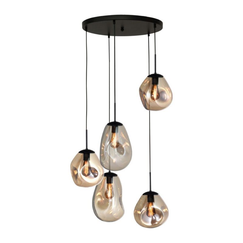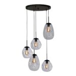 Die Leuchte ist mit fünf E-27 Fassungen ausgestattet und kann dadurch mit den Leuchtmitteln Ihrer Wahl bestückt werden. Ihre Höchstleistung beträgt 18 Watt pro Fassung.