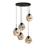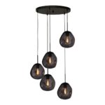 Die Leuchte ist mit fünf E-27 Fassungen ausgestattet und kann dadurch mit den Leuchtmitteln Ihrer Wahl bestückt werden. Ihre Höchstleistung beträgt 18 Watt pro Fassung.