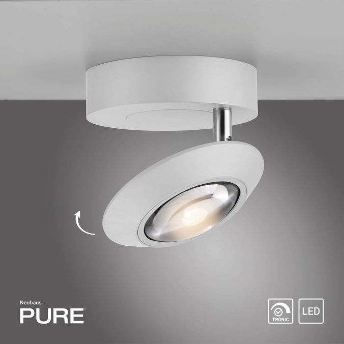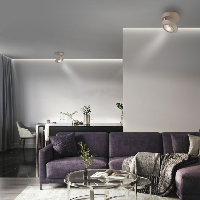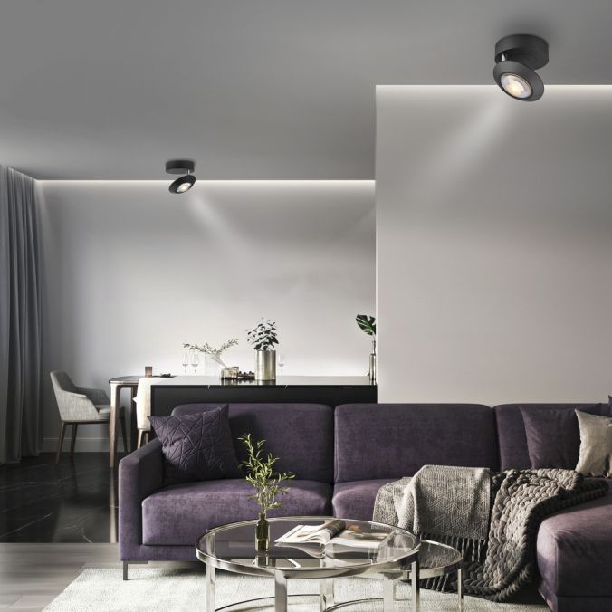 Für maximale Anpassungsfähigkeit lässt sich der Leuchtenspot dreh- und schwenken, sodass das Licht gezielt auf bestimmte Bereiche oder Objekte im Raum gelenkt werden kann. Ob Akzentbeleuchtung für Kunstwerke oder eine gleichmäßige Raumausleuchtung. Mit der PURE Oculis können Sie die Lichtführung bestimmen. Ebenfalls kann man den Spot so platzieren, dass er bündig mit dem Deckenkasten abschließt. Das LED-Board strahlt mit einer Farbtemperatur von 2700 Kelvin, was einem angenehmen, warmweißen Licht entspricht ideal für eine gemütliche und einladende Atmosphäre.