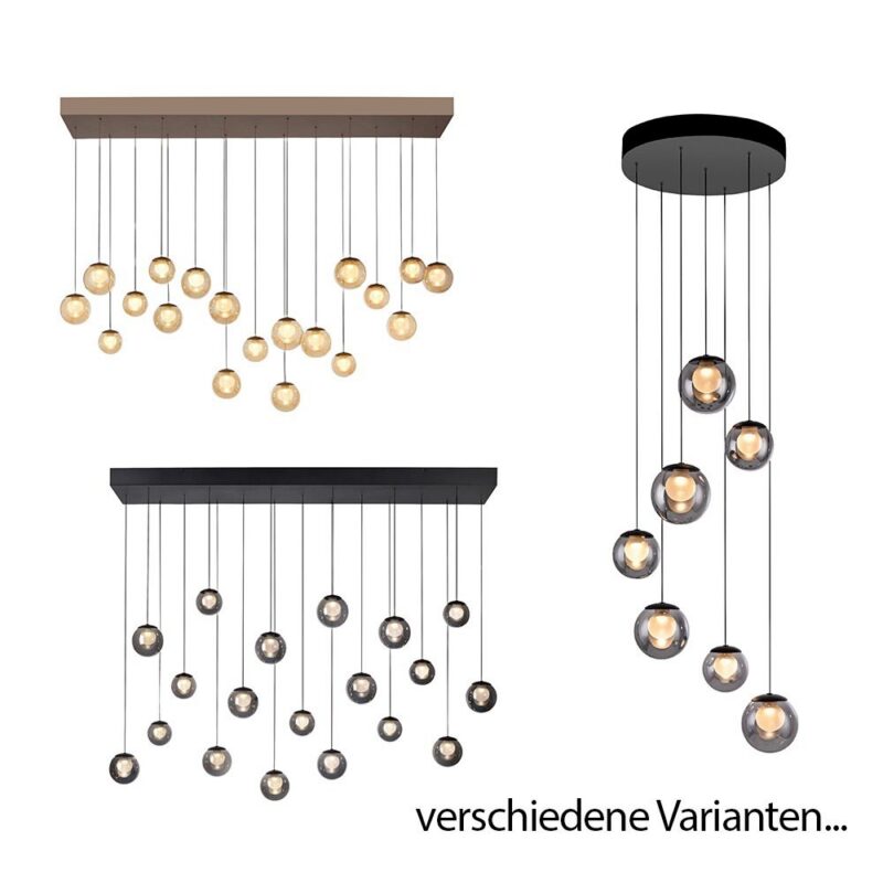 Die Helligkeit lässt sich zudem ebenfalls individuell anpassen, um stets die perfekte Lichtatmosphäre zu schaffen. Dank der integrierten Memoryfunktion merkt sich die Leuchte Ihre bevorzugten Einstellungen, sodass Sie diese nicht jedes Mal neu justieren müssen. Das Design ist ebenso beeindruckend wie die technischen Funktionen. Die hübschen Amber- bzw. Rauchgläser mit weißen Innenglas in verschiedenen Glasgrößen sorgen für eine gleichmäßige und angenehme Lichtverteilung.