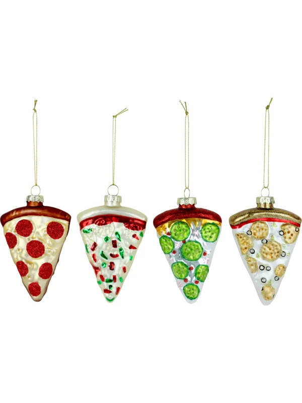 Die Pizza-Anhänger aus Glas sind einzeln erhältlich und mit einer Größe von ca. 10,5 cm ein echter Blickfang. Jedes Pizzastück ist detailreich gestaltet und überzeugt mit farbenfrohen, realitätsnahen Elementen – perfekt, um ein dekoratives Statement an Ihrem Weihnachtsbaum oder als Highlight in Ihrem Schaufenster zu setzen.