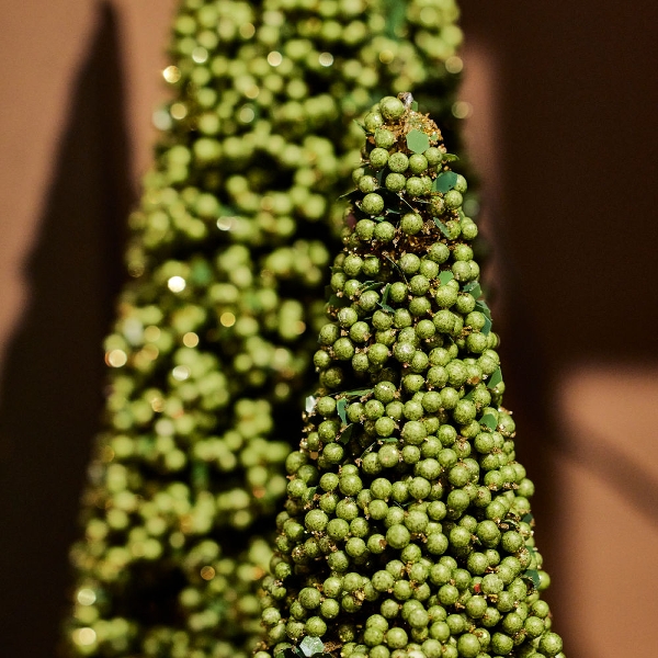 Ideal für festliche Arrangements, Tischdekorationen oder als stilvolles Highlight auf Sideboards und Fensterbänken. Die Tanne ist für den Innenbereich konzipiert und in zwei Größen erhältlich – perfekt zum Kombinieren oder als einzelner Blickfang.