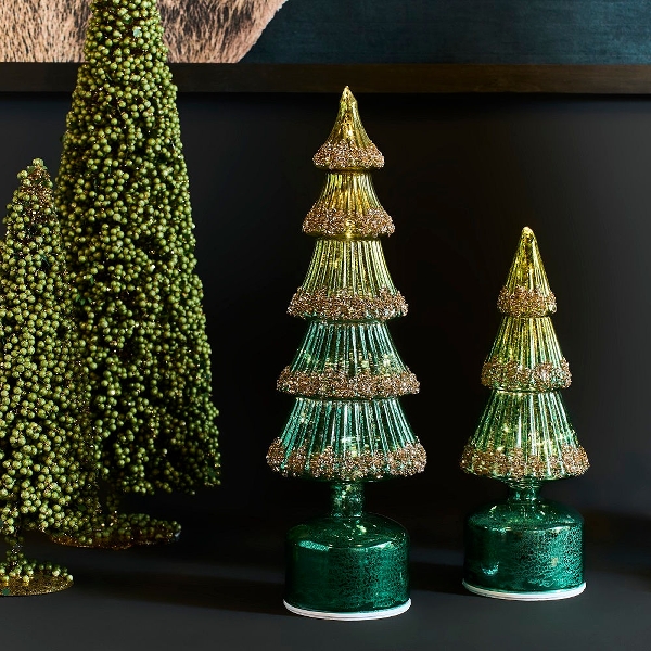 Diese elegante Glastanne in edlem Petrol-Grün ist ein echter Blickfang für jede winterliche Dekoration. Das hochwertige Glas sorgt für einen stilvollen Look, während die integrierte LED-Beleuchtung die Tanne von innen heraus stimmungsvoll erstrahlen lässt. Durch die sanfte Rotation entsteht ein faszinierendes Spiel aus Licht und Bewegung – perfekt für die festliche Atmosphäre in Ihrem Zuhause.